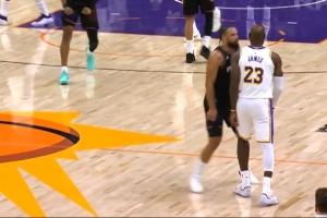GIF-詹姆斯接东契奇传球造成三分犯规,太阳挑战失败