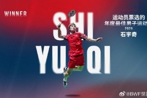 体育资讯12月15日讯 2025年世界羽联年度最佳运动员获奖名单公布,石宇奇当选运动员票选的年度最佳男子运动员。