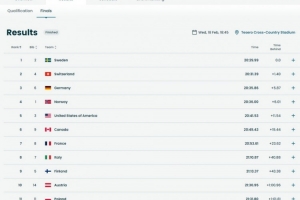 瑞典队以20分29秒99夺得金牌,瑞士和德国分获银铜牌。