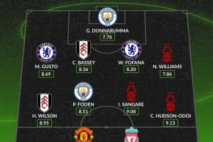 WhoScored英超第16轮最佳阵:森林3人入选,库尼亚、福登在列