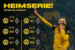 稳稳拿下!多特官方社媒晒对阵门兴战绩,已在主场取得13连胜