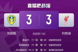 体育资讯12月07日讯 英超第15轮,利兹联补时3-3绝平利物浦。