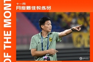 中甲官方:广州豹主帅冯峰当选中甲11月最佳教练,率队两战全胜