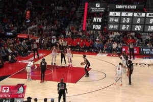 投篮对比:尼克斯45中23,开拓者40中20;罚球对比:尼克斯3中1,开拓者7中6