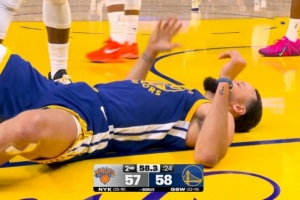 GIF-库里拉杆险些打成2+1!