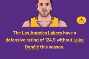 下一篇: 防守差不赖77?东契奇在场湖人防守效率116.2 不在场时124.9