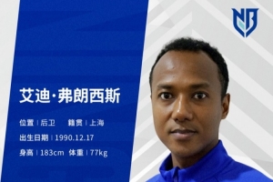 官方:原上海申花后卫艾迪·弗朗西斯加盟中甲球队宁波队