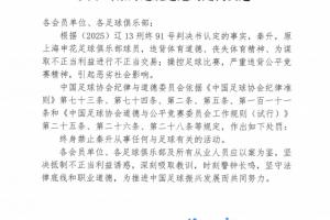 足协官方:秦升进行不正当交易,操控足球比赛,被终身禁足