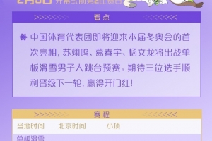 体育资讯2月5日讯 明天的米兰冬奥会,中国体育代表团首秀即将上演。