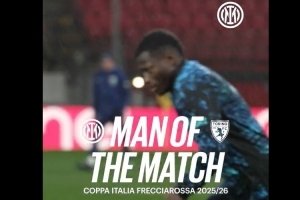 体育资讯2月6日讯 意杯1/4决赛,国米2-1击败都灵,据赛后国米官方消息,伊夏卡·卡玛特当选此役队内最佳球员。